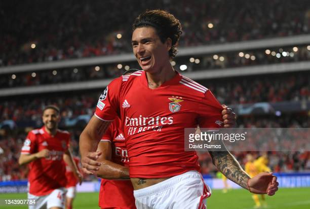 LISBON, PORTUGAL – SEPTEMBER 29: Darwin Nunez of SL Benfica celebrates scoring his sides third goal during the UEFA Champions League group E match between SL Benfica and FC Barcelona at Estadio da Luz on September 29, 2021 in Lisbon, Portugal.“Nosotros intentaremos ir a buscar excelencia, si después del Mundial …