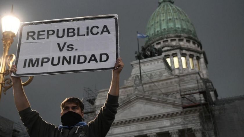 Enojado, uno de los manifestantes declaró que “no tenemos nada que ver con ningún partido de Juntos por el Cambio y ningún dirigente nos llamó para decirnos si está a favor o en contra de lo que estamos haciendo y no nos interesa qué piensen ni qué digan. Nosotros estamos donde tenemos que estar, defendiendo la República antes de que sea tarde”. Y agregó: “Este proyecto es a la medida de los corruptos, no busca hacerle el bien a la población que reclama por una justicia más eficaz, solo quiere resolverle los problemas a los ex funcionarios que tienen causas en la justicia penal”. Fuera Cristina , que se vayan todos, gritos de el pueblo, que seguiran ahi mañana tambien.