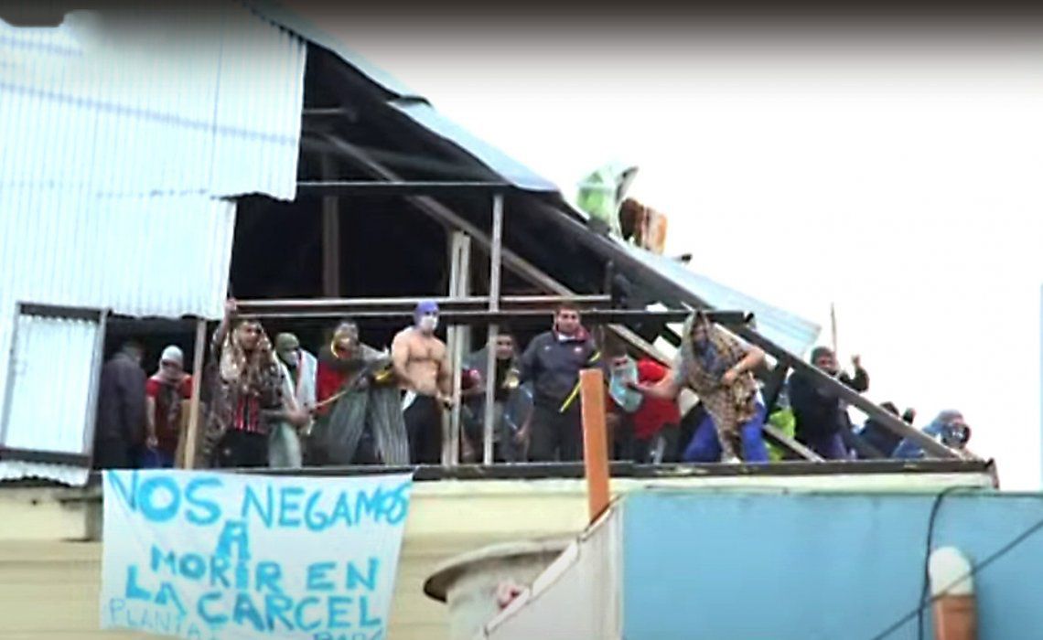 El mensaje de los detenidos en la Unidad N°13 En la imagen se lo ve a uno de los detenidos mientras habla a cámara con un barbijo y rodeado de más compañeros de pabellón con las bocas tapadas. “Hasta acá llegó lo pacífico que veníamos”, dice mientras mira fijo al celular que …